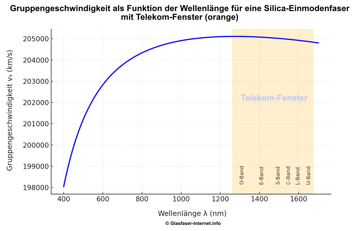 liegt hier ca. bei 204.000 – 205.000 km/s, was selbst bei hohen Laufstrecken nur sehr kleine Abweichungen und somit Dispersion bedeutet.